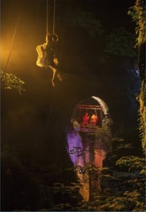 Gribouille, après 3 mois d’entraînement, est remonté sur son trapèze dans le rôle de Mlle Juliette, un ange bien dodu, qui n'a pas peur des diables et chante des chansons d'amour 30 mètres au dessus des canyonneurs !