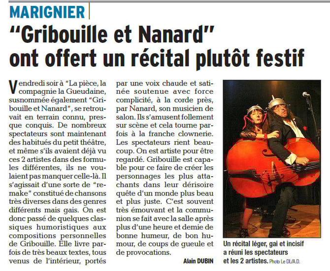 Gribouille & Nanard ont commencé à se produire en duo dès 1999. Ils ont été rejoints par d'autres musiciens au sein de "DaNar'Grib", puis de "Bijoux de famille" avant de revenir en 2007 à la forme du Duo. Ce qui leur permet de donner aux chansons interprétées une forme théâtrale plus aboutie grâce à leur complicité.